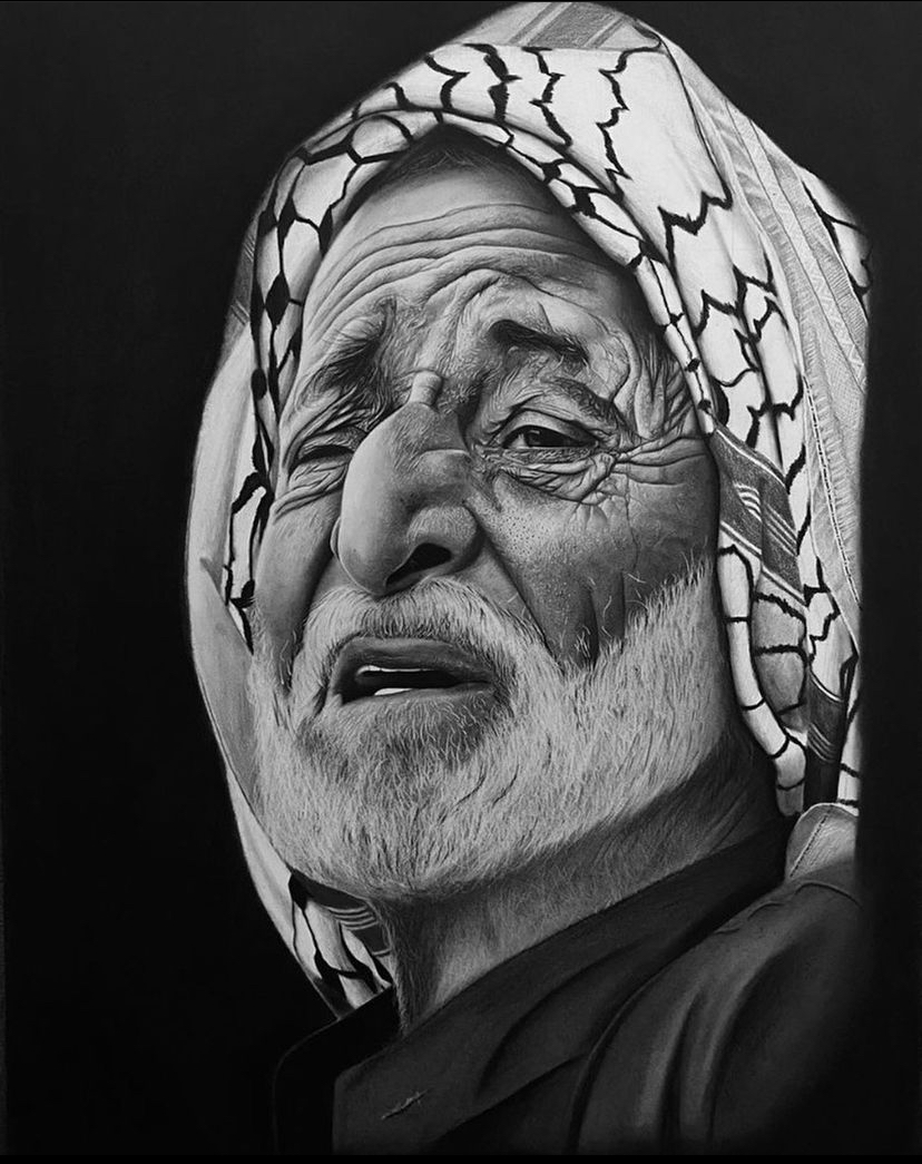 - نبذة عن العمل : الرجل المسن يظهر عليه تعب السنين والالم والجهد والمعاناة التي عاناها آباءنا في الماضي.